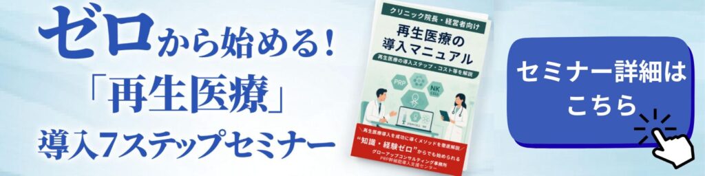可能です。開業日に再生医療メニューをスタートさせるにはコツがいります。
