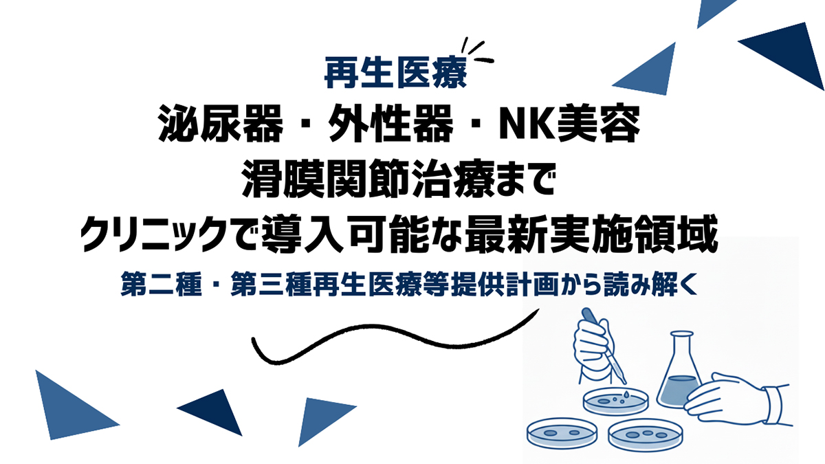 【再生医療】泌尿器・外性器・NK美容・滑膜関節治療までクリニックで導入可能な最新実施領域 ― 第二種・第三種再生医療等提供計画から読み解く ―